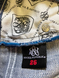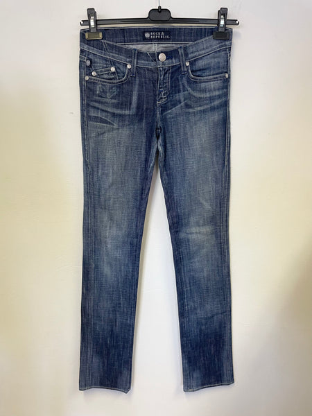 ROCK & REPUBLIC COSBIE BLUE DENIM STRAIGHT LEG JEANS SIZE 26 W/ 36L