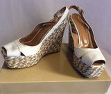Sergio Rossi Ivory/Beige Canvas & Leather Wedge Heel Peeptoe Sandals Size 3/36