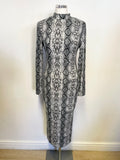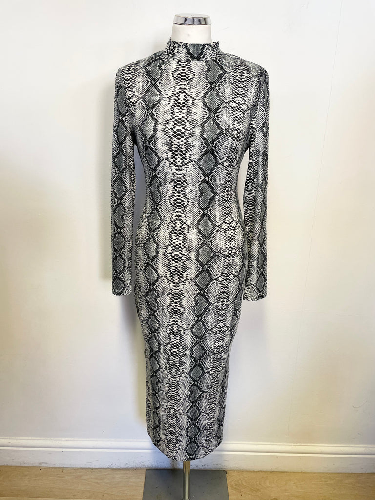SHEIN GREY SNAKESKIN PRINT LONG SLEEVE STRETCH JERSEY MIDI DRESS SIZE 10