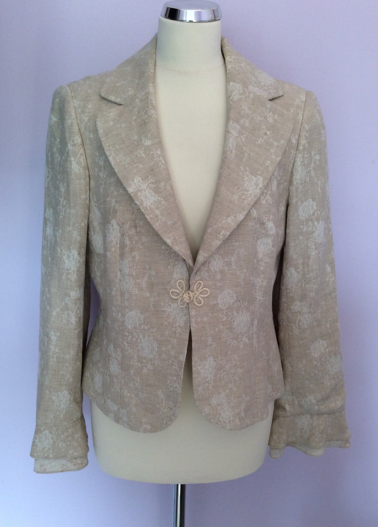Smart Per Una Beige Embossed Floral Print Linen Jacket Size 14