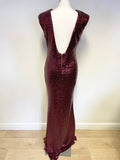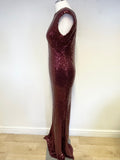 SOKY & SOKA DEEP RED SEQUINNED SLEEVELESS FULL LENGTH EVENING DRESS SIZE XL