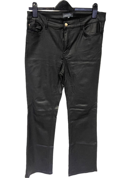 SOSANDAR BLACK WAX COATED BOOT CUT TROUSERS/ JEANS SIZE 16R