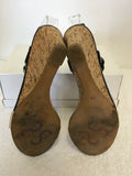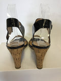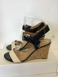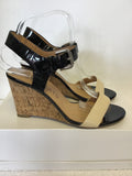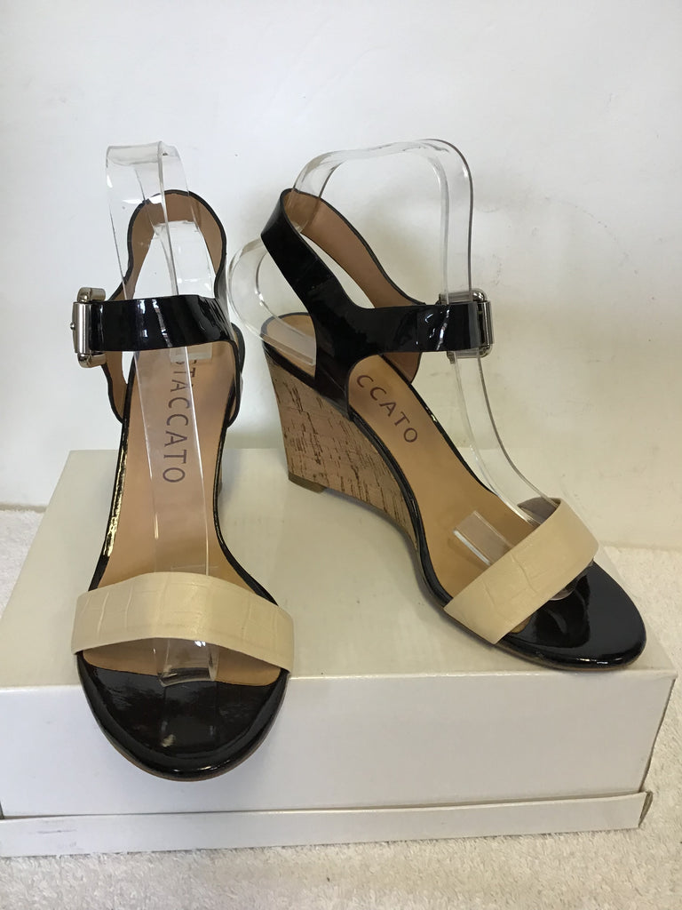 STACCATO BLACK PATENT & CREAM WEDGE HEEL SANDALS SIZE 5/38