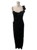 TADASHI BLACK VELVET LONG EVENING PENCIL DRESS SIZE M