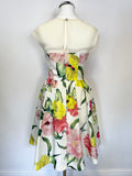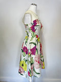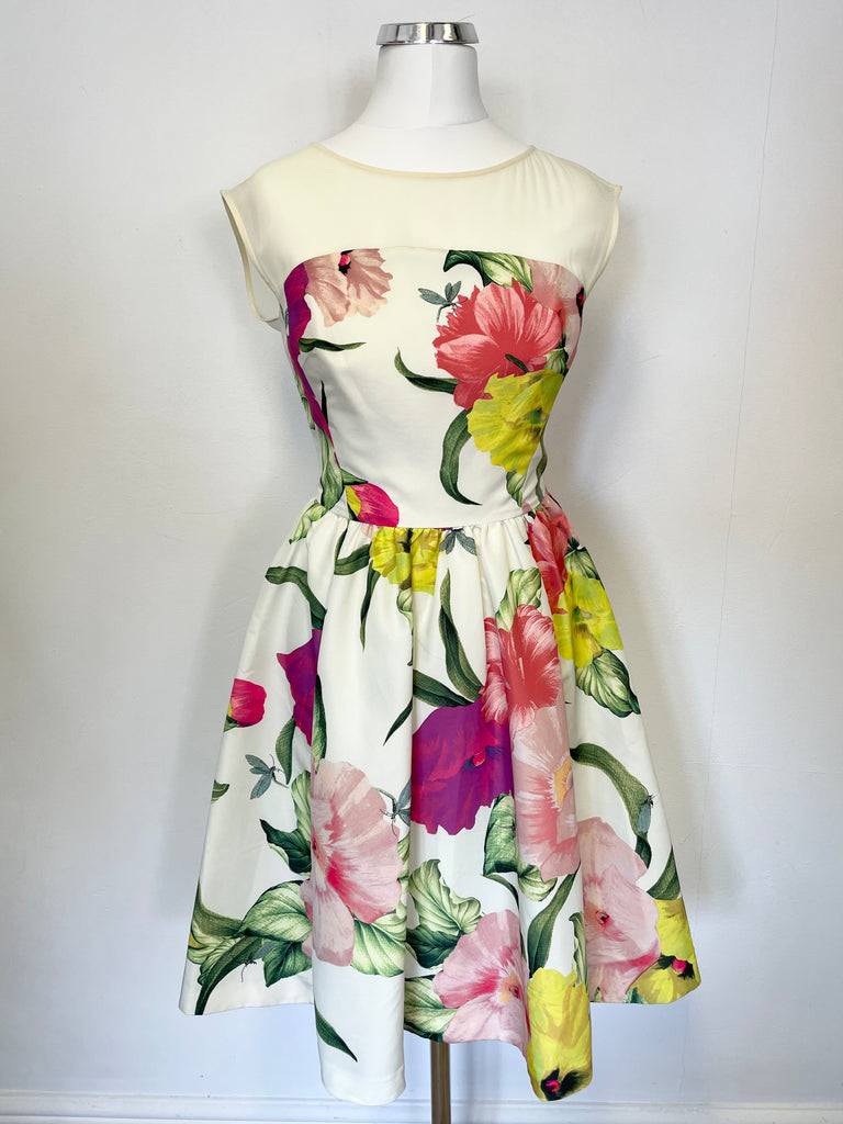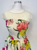 TED BAKER IBIRIS IVORY & MULTI COLOURED FLORAL PRINT FIT & FLARE DRESS SIZE 0 UK 6