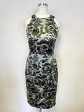 VERSACE COLLECTION GREEN,SILVER & BLACK SATIN SLEEVELESS PENCIL DRESS SIZE 40 U8