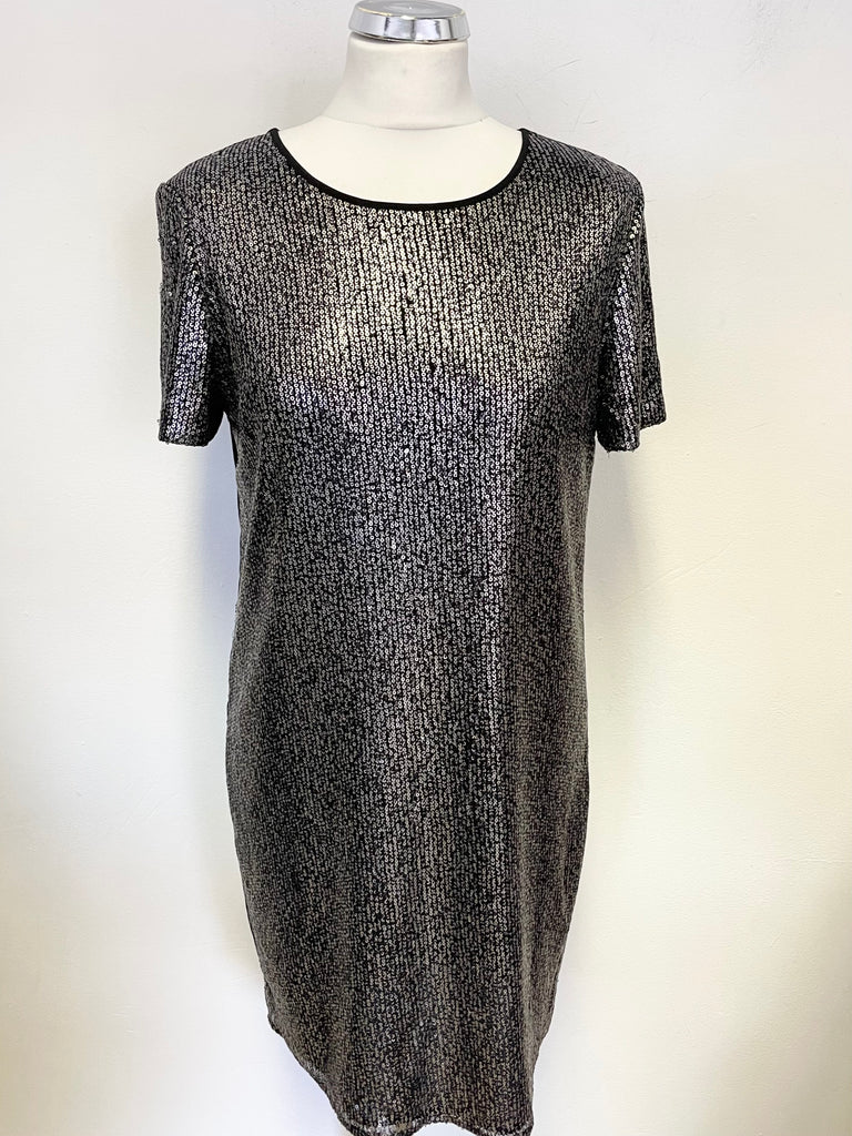 WHISTLES BLACK WITH PEWTER SEQUINS SHIFT DRESS SIZE 10