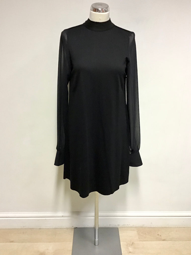 ZARA BLACK TIE BACK LONG SHEER SLEEVE DRESS SIZE M