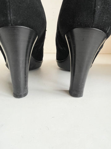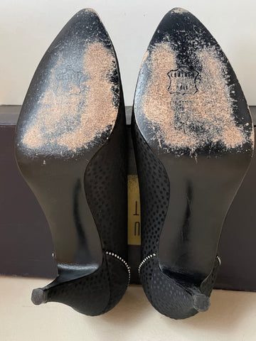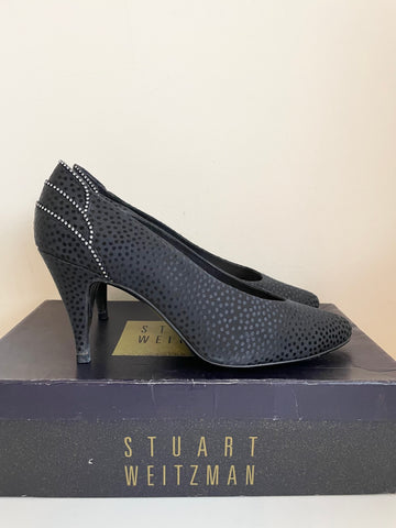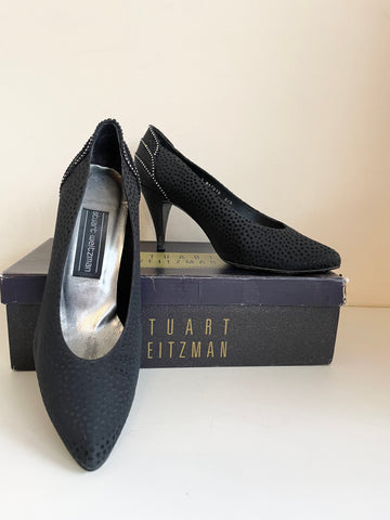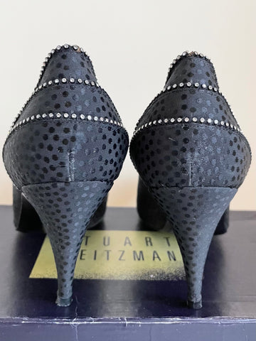 STUART WEITZMAN BLACK SATIN SPOT WITH DIAMANTE TRIM HEELS SIZE 4.5/37.5