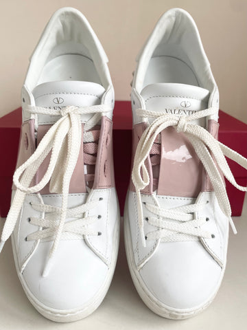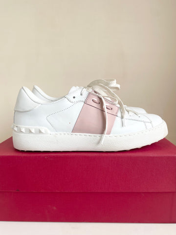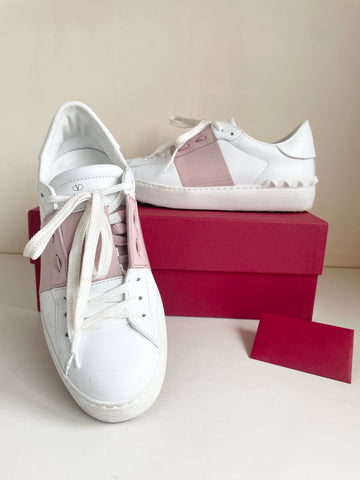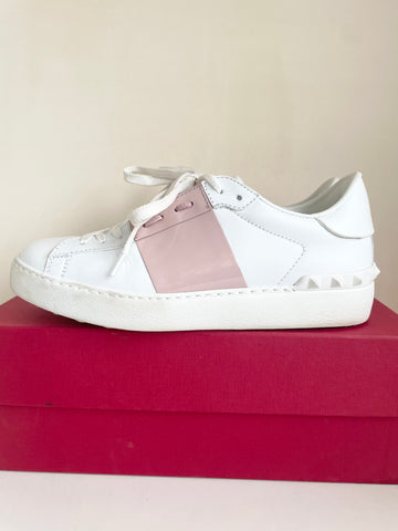 VALENTINO GARAVANTI WHITE & WATER ROSE LEATHER TRAINERS SIZE 4.5/37.5