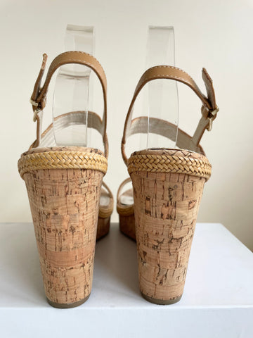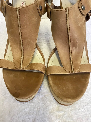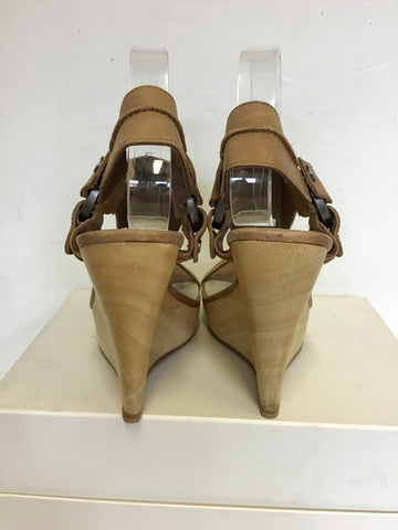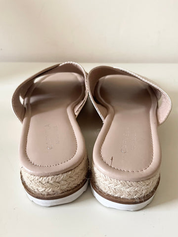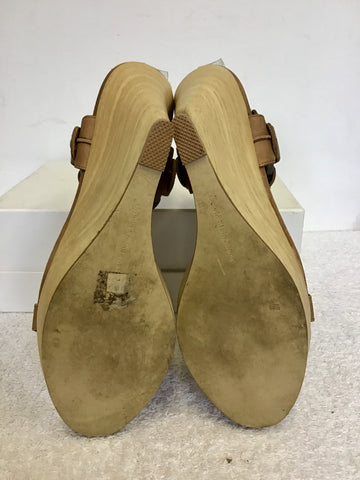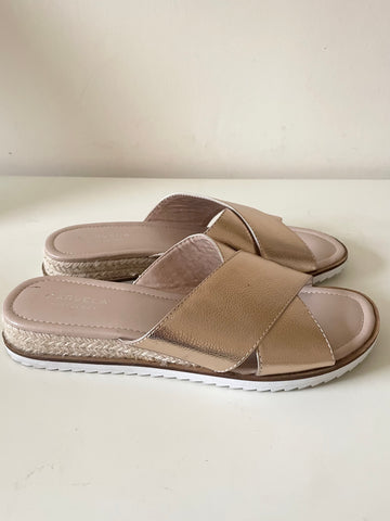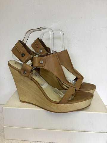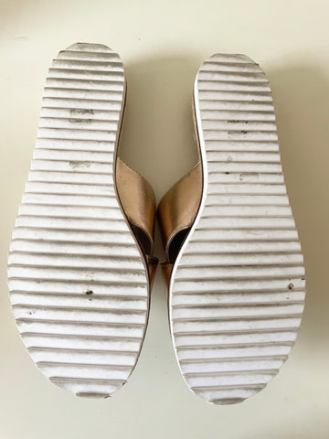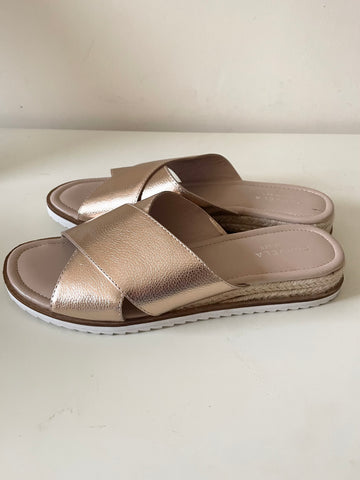 BRAND NEW UNISA ROSE GOLD LEATHER & GLITTER TRIM WEDGE HEEL SANDALS SIZE 7/40