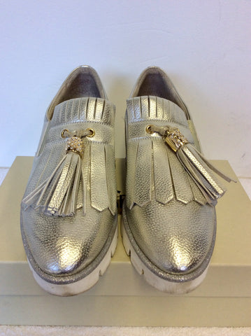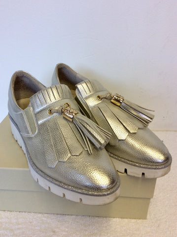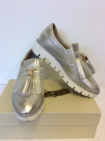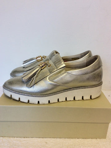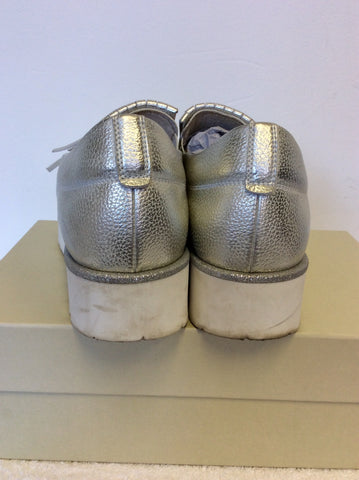 DL SPORT SILVER & WHITE WEDGE HEEL LEATHER LOAFERS SIZE 7/40