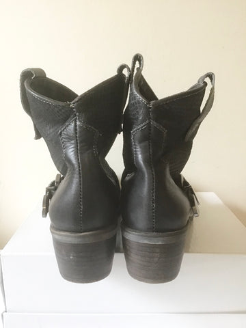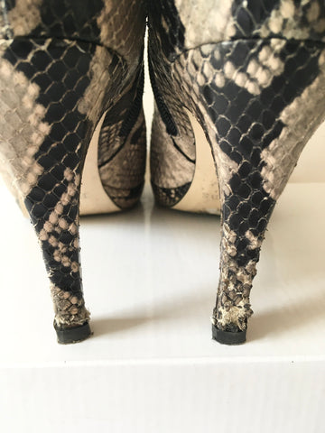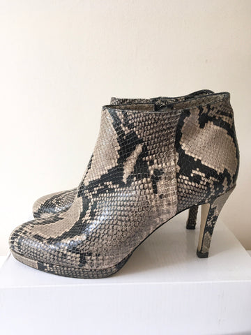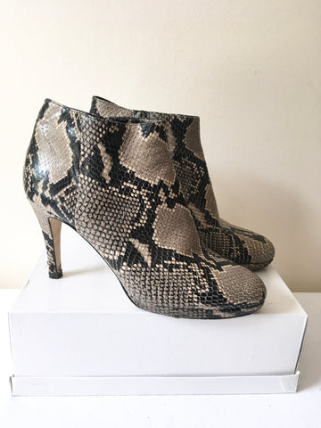 HOBBS BLACK & NEUTRAL SNAKESKIN LEATHER ANKLE BOOTS SIZE 7/40