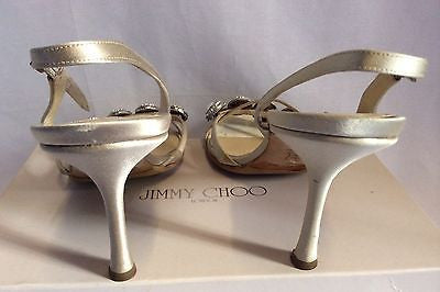 Jimmy Choo Nude Silk Satin Jewel Strappy Heel Sandals Size 7/40