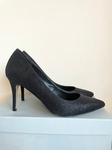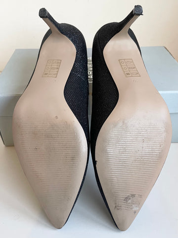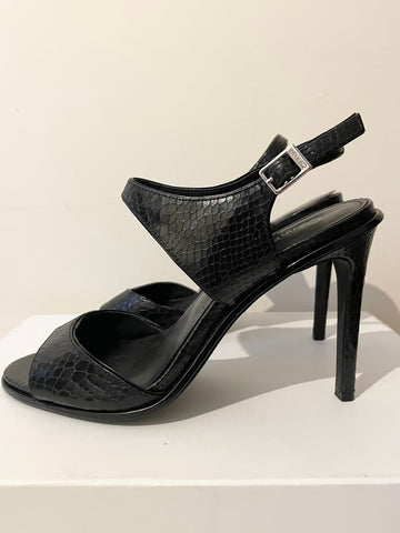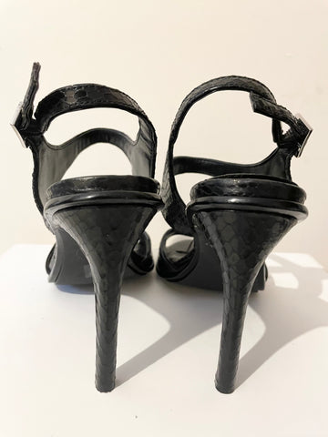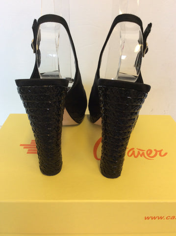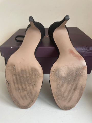 CASTANER BLACK SATIN & LEATHER PEEPTOE & SLINGBACK HEELS SIZE 7/41