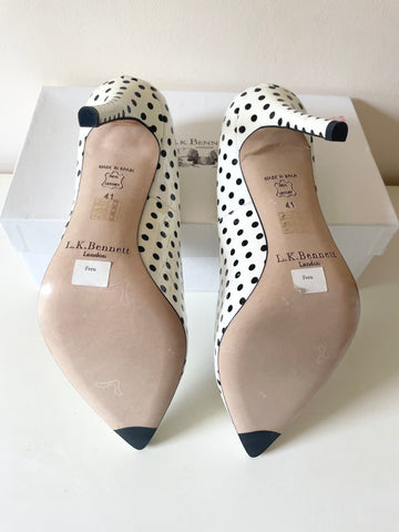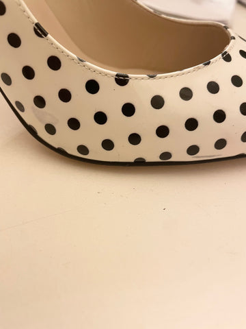 BRAND NEW WITH DEFECT LK BENNETT FERN WHITE & BLACK SPOT PATENT LEATHER HEELS SIZE 7.5/41