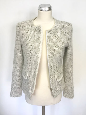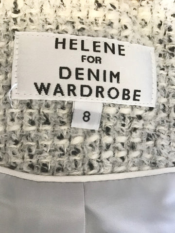 BRAND NEW WITH DEFECT HELENE FOR DENIM WARDROBE LIGHT GREY TWEED JACKET SIZE 8
