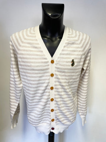Jacques Vert Blue, White & Green Stripe Long Cardigan