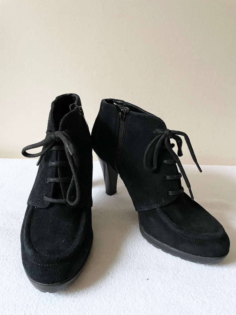 ANNE KLEIN BLACK SUEDE LACE UP SHORT SHOE/BOOTS SIZE 5/38