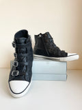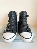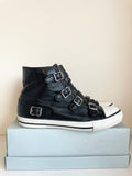 ASH BLACK LEATHER & WHITE BUCKLE TRIM HIGH TOP PLIMSOLS SIZE 6/39