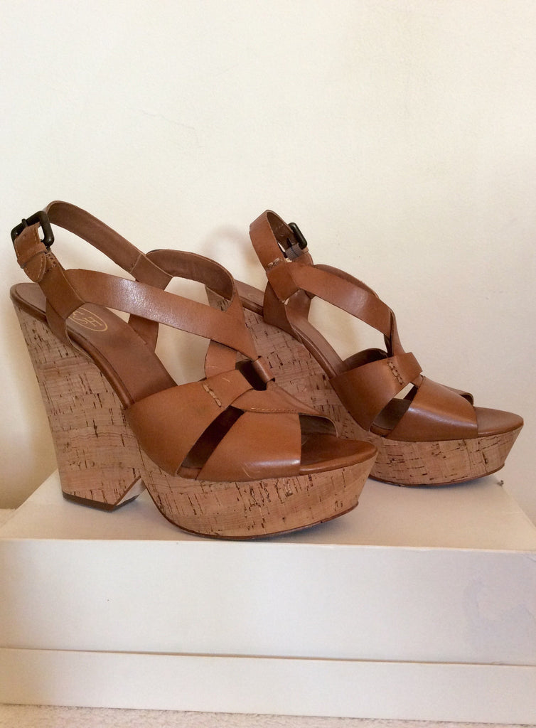 Ash Tan Leather Platform Wedge Heel Sandals Size 6/39