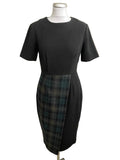 BRAND NEW ASOS BLACK & GREEN TARTAN WOOL BLEND PENCIL DRESS SIZE 10