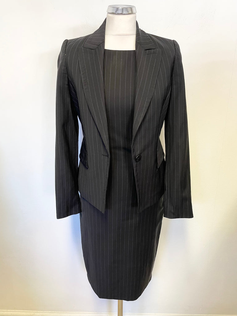 AUSTIN REED WOOL BLEND BLACK PINSTRIPE PENCIL DRESS & JACKET SUIT SIZE 8