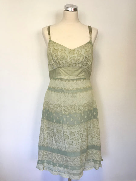 AVOCA ANTHOLOGY LIGHT GREEN PRINT COTTON & SILK PRINT STRAPPY DRESS SIZE 2 UK 12