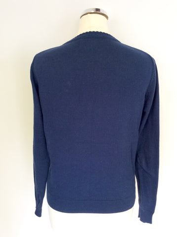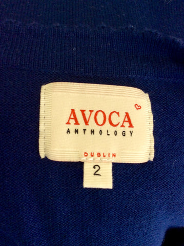 AVOCA ANTHOLOGY BLUE COTTON V NECK CARDIGAN SIZE 2 UK 10/12