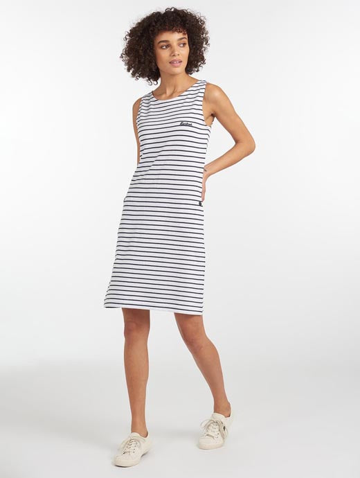 BARBOUR DALMORE WHITE & NAVY BLUE STRIPE SLEEVELESS SHIFT DRESS
