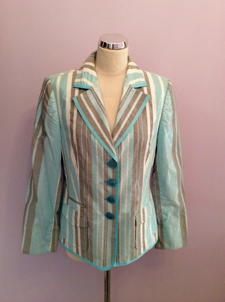 Basler Turqouise, White & Grey Stripe Jacket Size 14