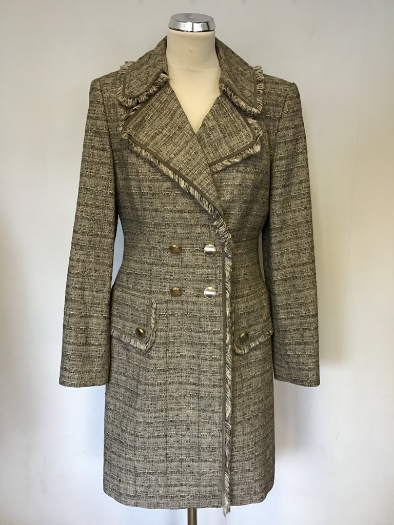 BETTY BARCLAY BROWN & CREAM WEAVE COTTON BLEND COAT SIZE 10