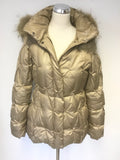 BETTY BARCLAY PALE GOLD 100% DOWN FILLED PADDED JACKET WITH RACOON FUR TRIM HOOD SIZE 8