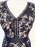 BETTY JACKSON BLACK LABEL NAVY LACE OVER CREAM V NECK SLEEVELESS SPECIAL OCCASION DRESS