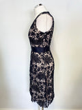 BETTY JACKSON NAVY LACE OVER CREAM V NECK SLEEVELESS SPECIAL OCCASION DRESS SIZE 10