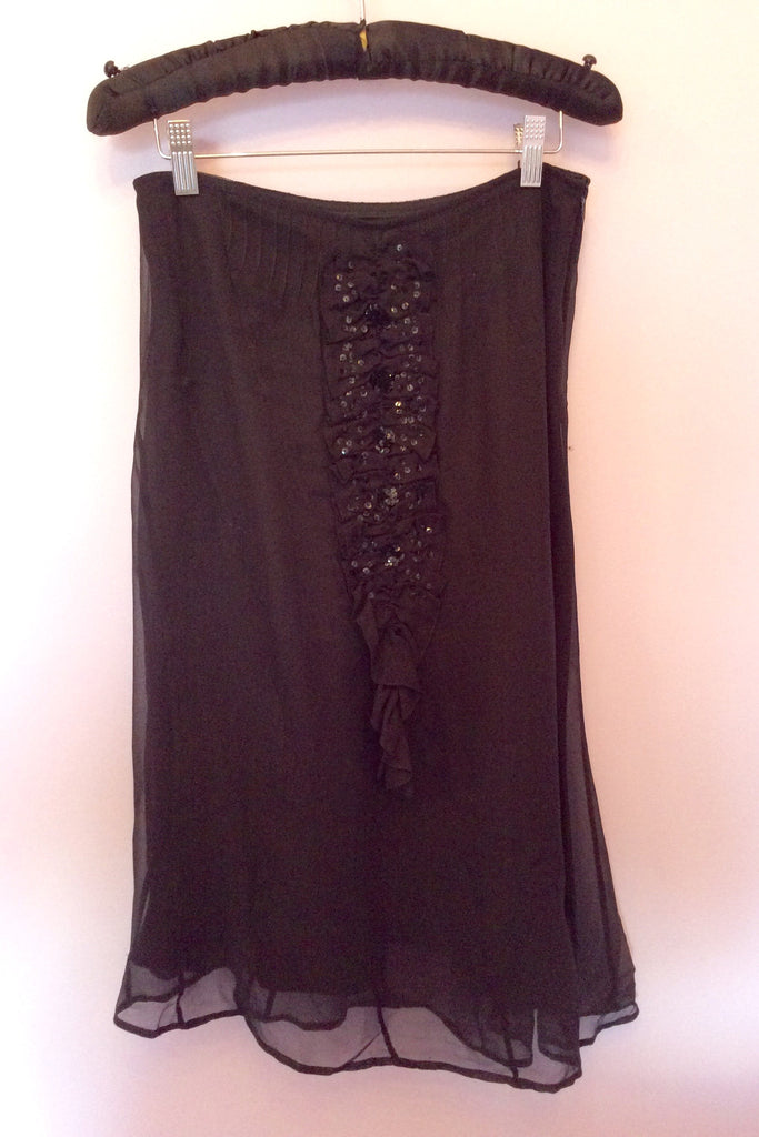 Night By Birger Et Mikkelsen Black Sequin Trim Silk Skirt Size 10