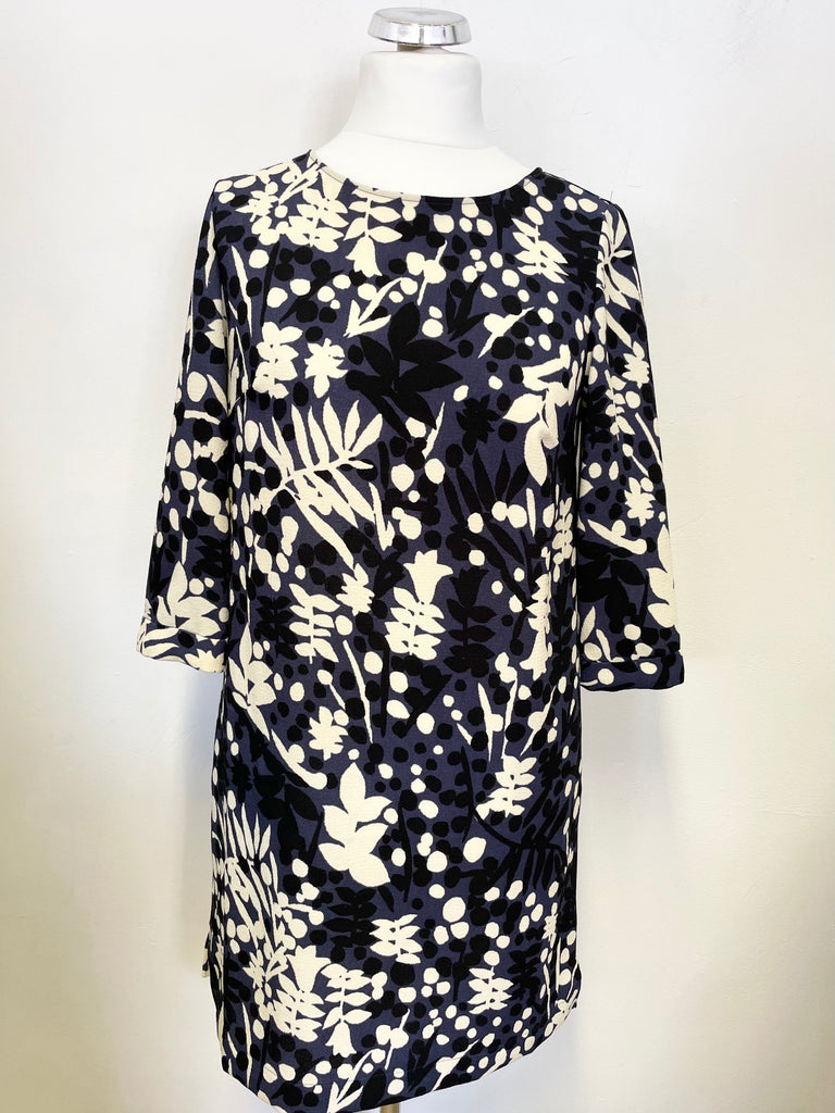 BODEN BLUE,BLACK & WHITE LEAF PRINT SHIFT DRESS