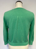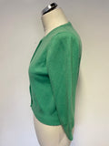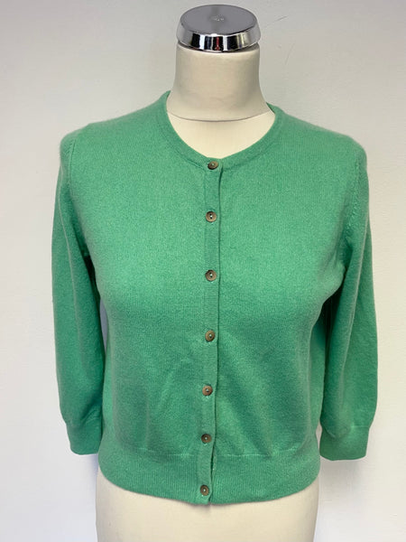 BODEN 100% CASHMERE GREEN ROUND NECK LONG SLEEVE CARDIGAN SIZE 14
