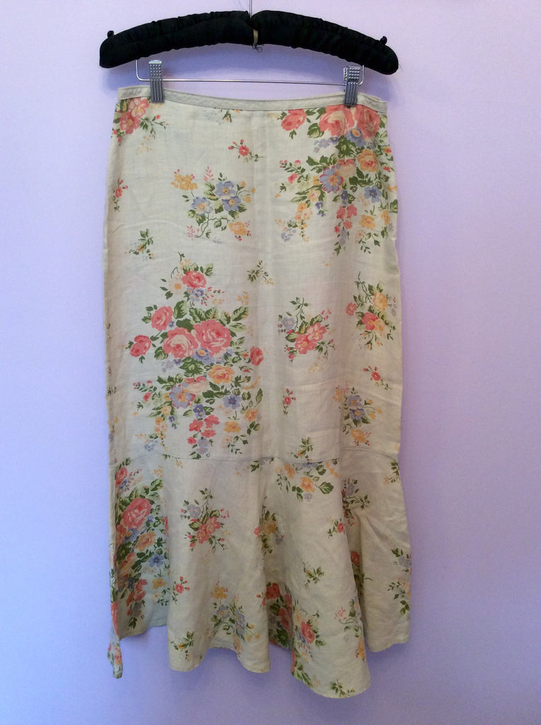 Boden Beige Floral Print Linen Calf Length Skirt Size 12L