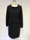 BODEN BLACK BOAT NECKLINE LONG SLEEVED SHIFT DRESS SIZE 14