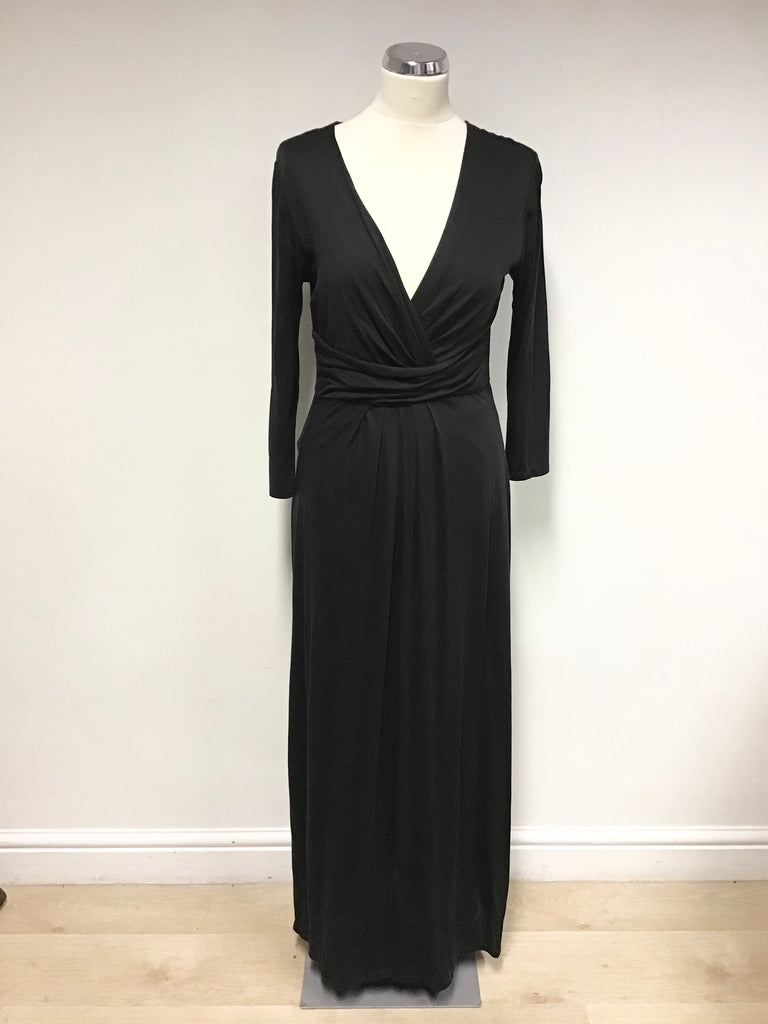 BODEN BLACK V NECKLINE 3/4 SLEEVE LONG MAXI DRESS SIZE 10R