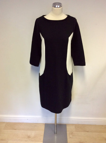 BODEN BLACK & WHITE COLOUR BLOCK RIBBED PENCIL DRESS SIZE 16L