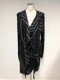 BOLONGARO TREVOR BLACK & GREY STRIPE LONG SLEEVED STRETCH JERSEY DRESS SIZE M