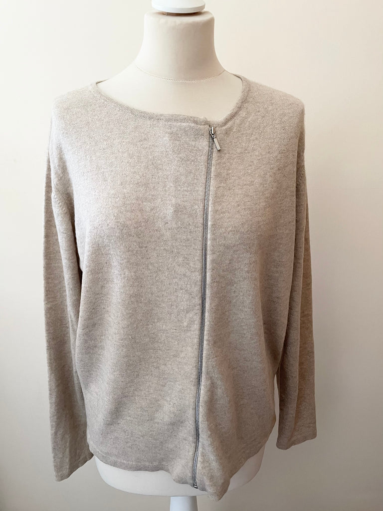 BRORA 100% CASHMERE BEIGE ZIP UP CARDIGAN SIZE L