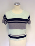 BRORA MINT GREEN,NAVY BLUE & GREY STRIPE SHORT SLEEVE COTTON JUMPER SIZE 8/10