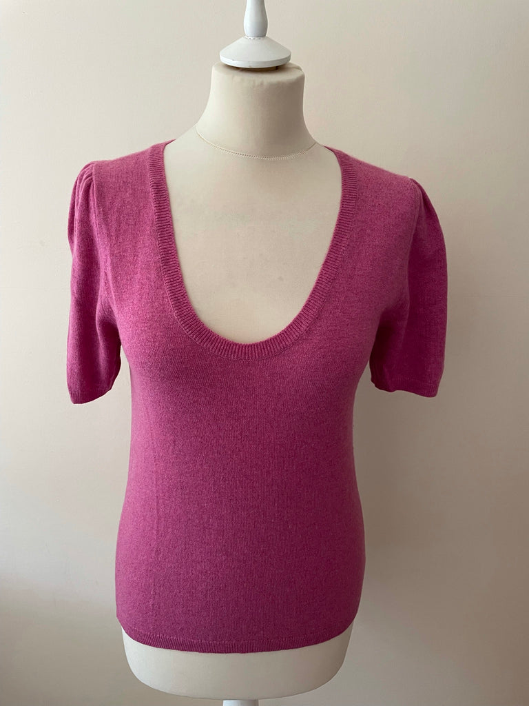 BRORA PINK 100% CASHMERE SCOOP NECK SHORT SLEEVE JUMPER SIZE 10