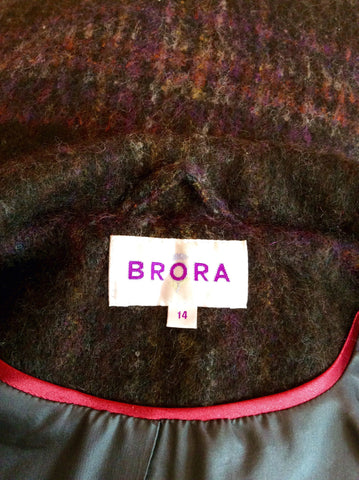 Brora Dark Brown & Purple Shades Weave Wool Coat With Silk Lining