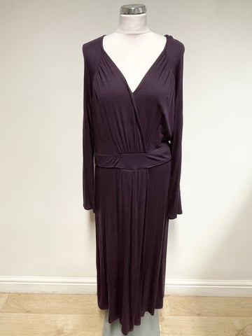 BRORA AUBERGINE JERSEY V NECK LONG SLEEVED MIDI DRESS