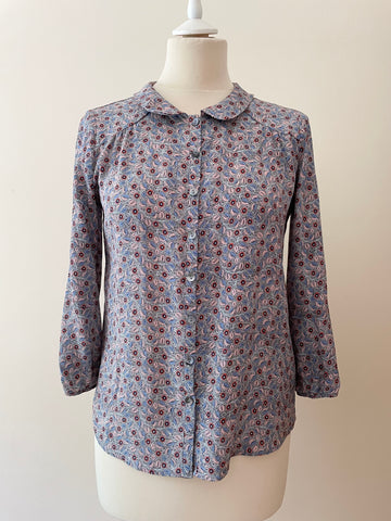 BRORA 100% LINEN BEIGE,RED & GREEN PRINT FLUTED HEM A-LINE SKIRT
