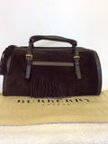 BURBERRY DARK BROWN SUEDE & LEATHER TRIM FRINGED HAND BAG